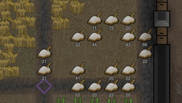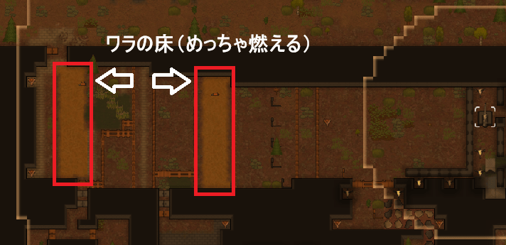 ウランスラッグの射程に、藁の床を敷いて、燃焼トラップを設置します。