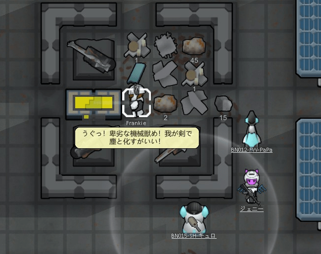 ジェニーも起きたんで、娯楽回復させてタレット破壊に向かいます。