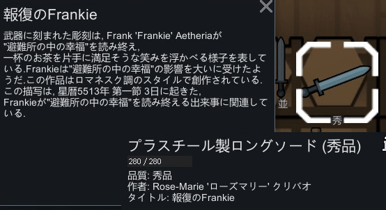 まぁ、性能についてはあとでじっくり比較するとして、これはフランキーにとっても一生ものの宝剣ですね!