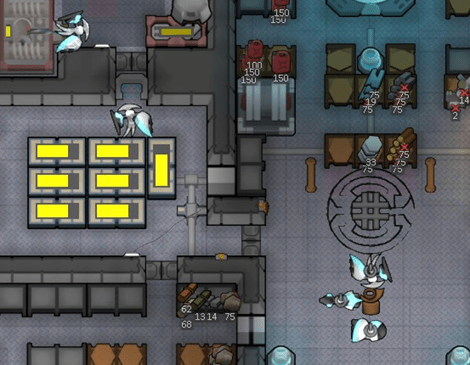 いいもん入ってそうな収納ケースの周りにメカノイド10体。