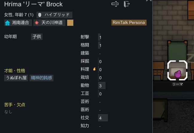 姉のジェニーとの差別化のためにも、少し内政よりのうぬぼれ屋にしちゃおかな。