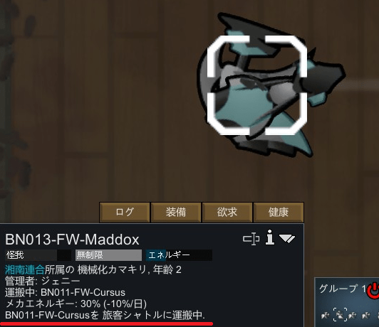 セクシーマリアのクールダウンが、あと4時間なんで、立ち去る方向で、ダウンしたカマキリをシャトル積載しようと指示したら…