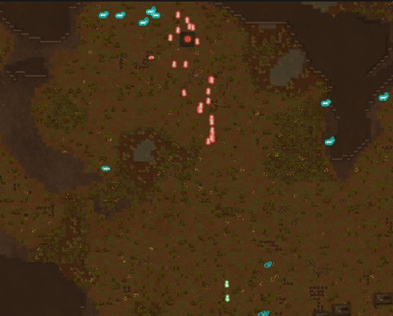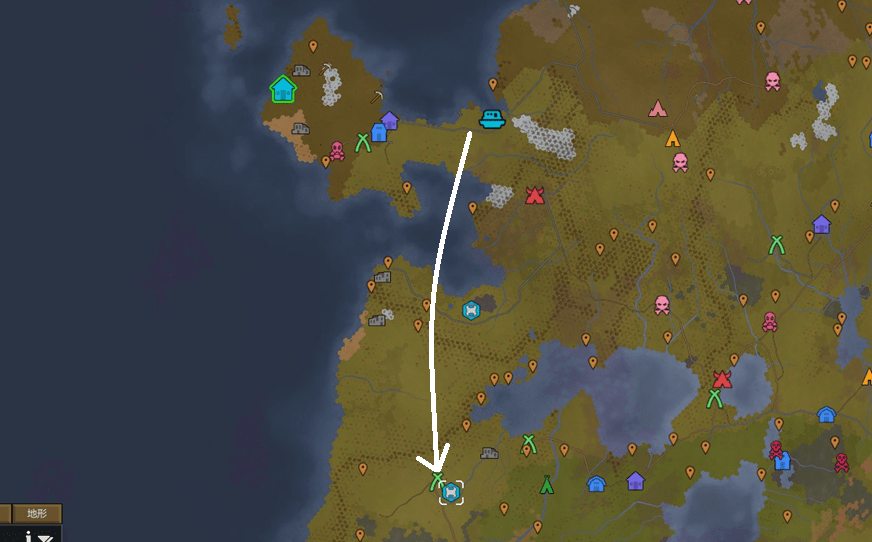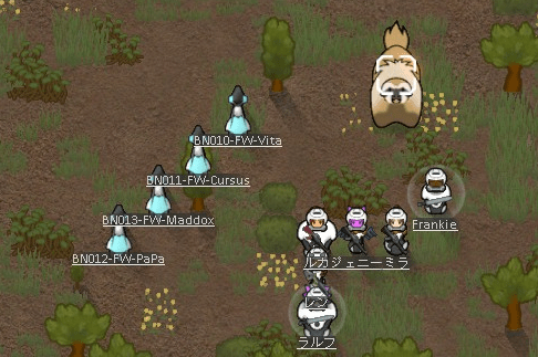 ちょっと遠いけど、ミリターの移動速度は3.8くらいなんで、起こしてシップの射程まで誘導しよう。