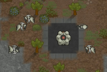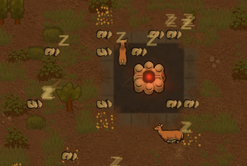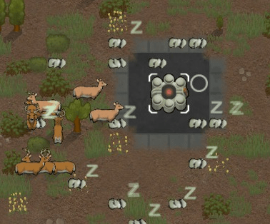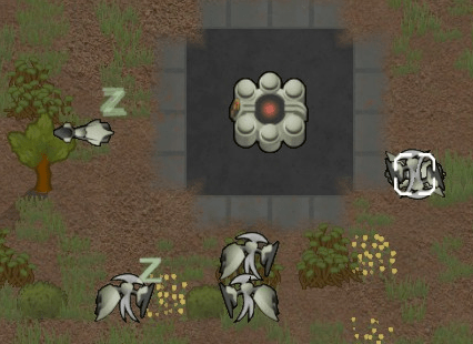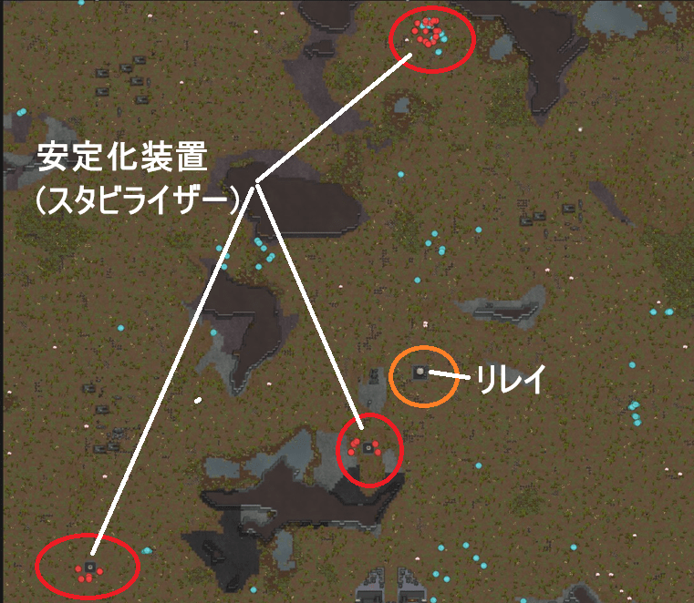 それぞれの安定化装置の周囲では複数体のメカノイドが寝てます。