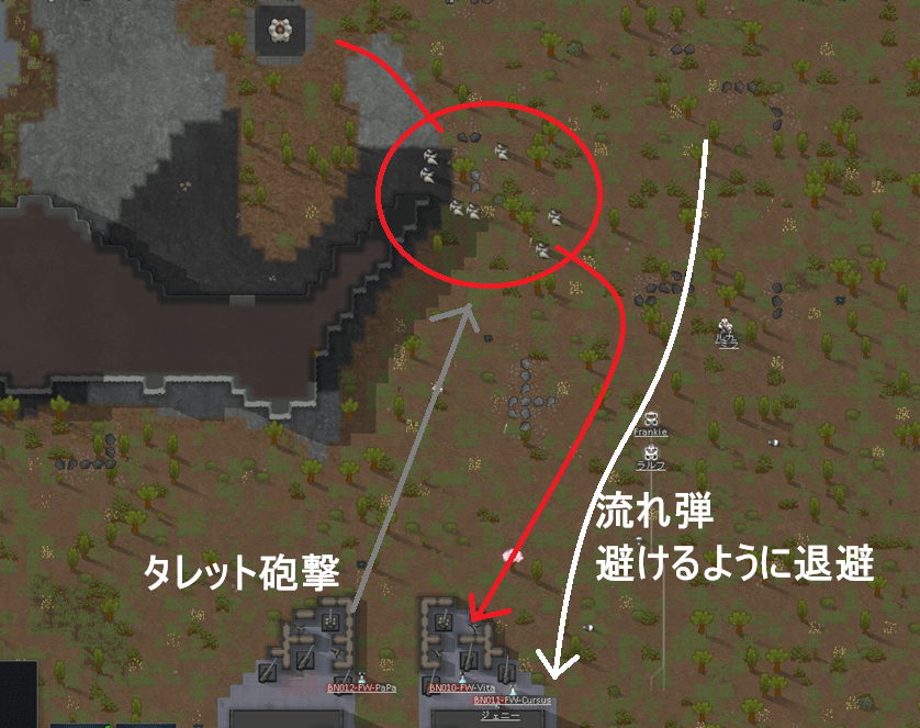 こっちのカマキリはタレットまでおびき寄せる作戦で…。