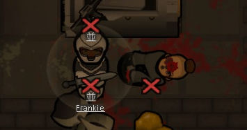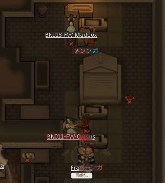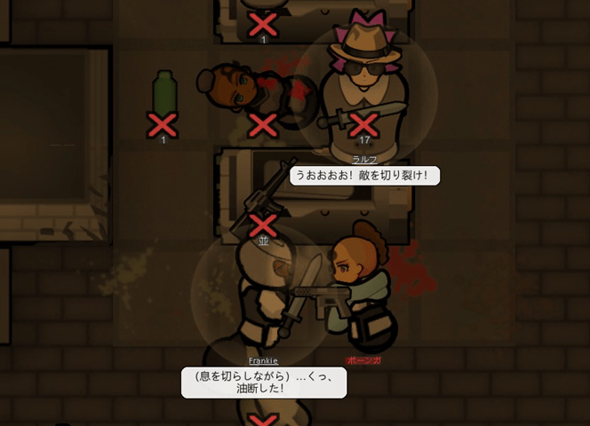 あけると、2人と交戦、1人ダウン、1人は立ち去ろうとしています。