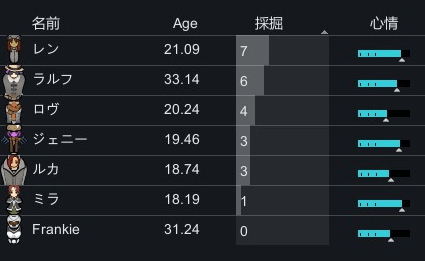 ただ残念なのは、ロヴもフランキーも採掘スキル低い。