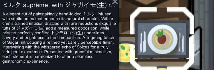 そして、ウルスが肉も魚も使わずに、ミルクと野菜だけのスペシャリテに挑戦。