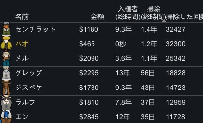 入植者4.9年、4歳から13歳まで2年を過ごしているため、実質2.9年の時間で、13年以上入植者をやっているグレッグとTanpopoさんを追い抜いての1位です