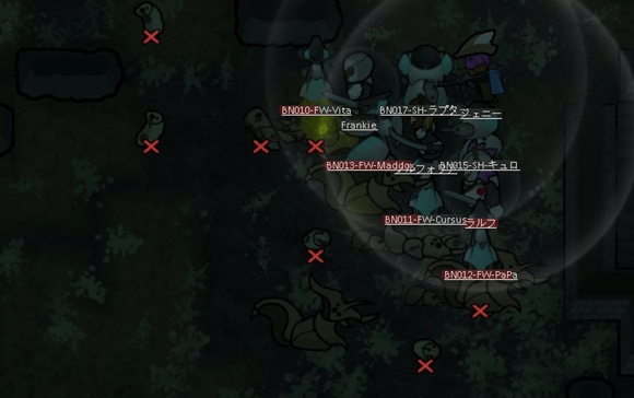 いったん、引いて立て直してからにしようか悩みましたが、せっかくMaddoxが時間を作ってくれたので、この1マスのとこで食い止めるのがベストと判断した。