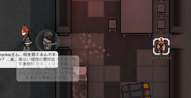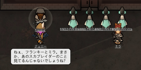 タレットは電源を入れる準備だけして、ミラとフランキーで偵察&挑発。