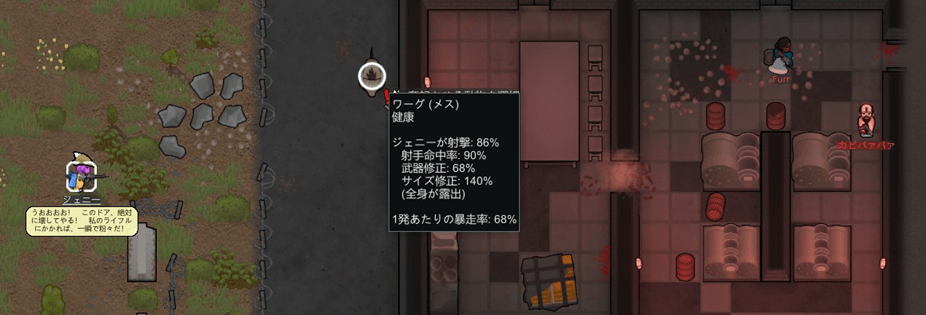 こんどはジェニーで遠目から部屋の奥のドア破壊。